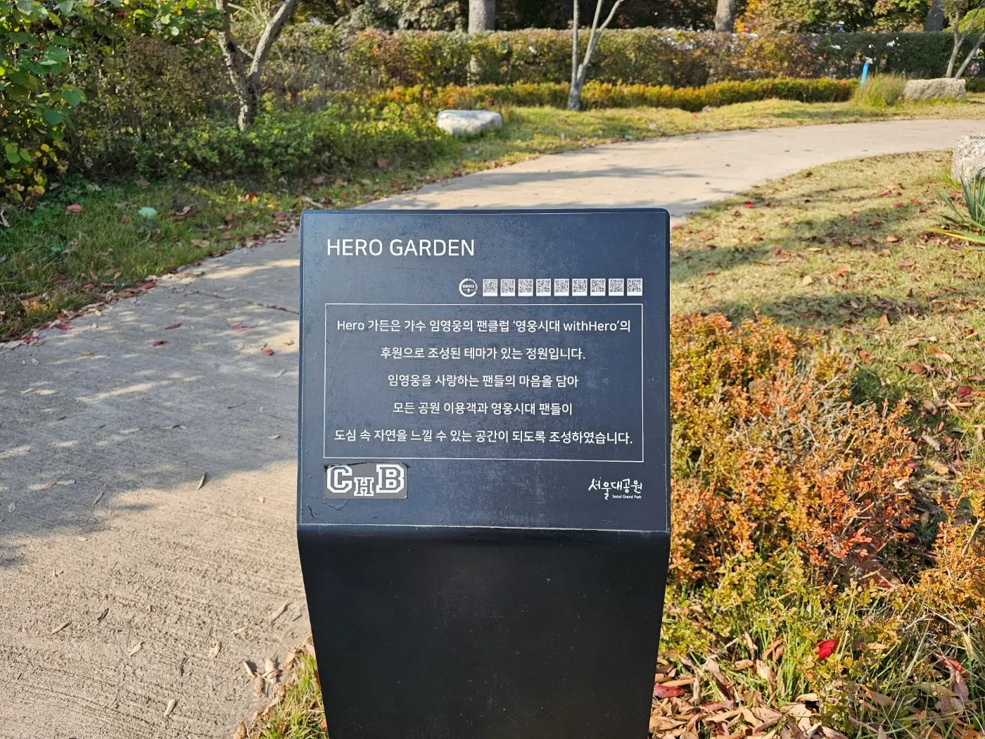 임영웅 정원 HERO 가든은 임영웅 씨의 팬클럽인 '영웅시대 withHero'의 후원으로 조성된 정원이라고 합니다. 임영웅을 사랑하는 팬들의 마음을 담아 모든 공원 이용객과 영웅시대 팬들이 도심 속 자연을 느낄 수 있는 공간이 되도록 조성하였다고 합니다. 저 또한 임영웅 씨의 팬이기 때문에 집에서 가까운 서울대공원 안에 임영웅 정원이 있다는 것이 너무 흐뭇하고 좋은 것 같습니다. 임영웅 히어로 가든은 생각보다 작고 아담하게 조성되어 있습니다. 그래도 임영웅 씨를 기념하는 정원이니까 오셔서 기념사진 몇 컷 찍어 보시는 걸 추천드립니다.
