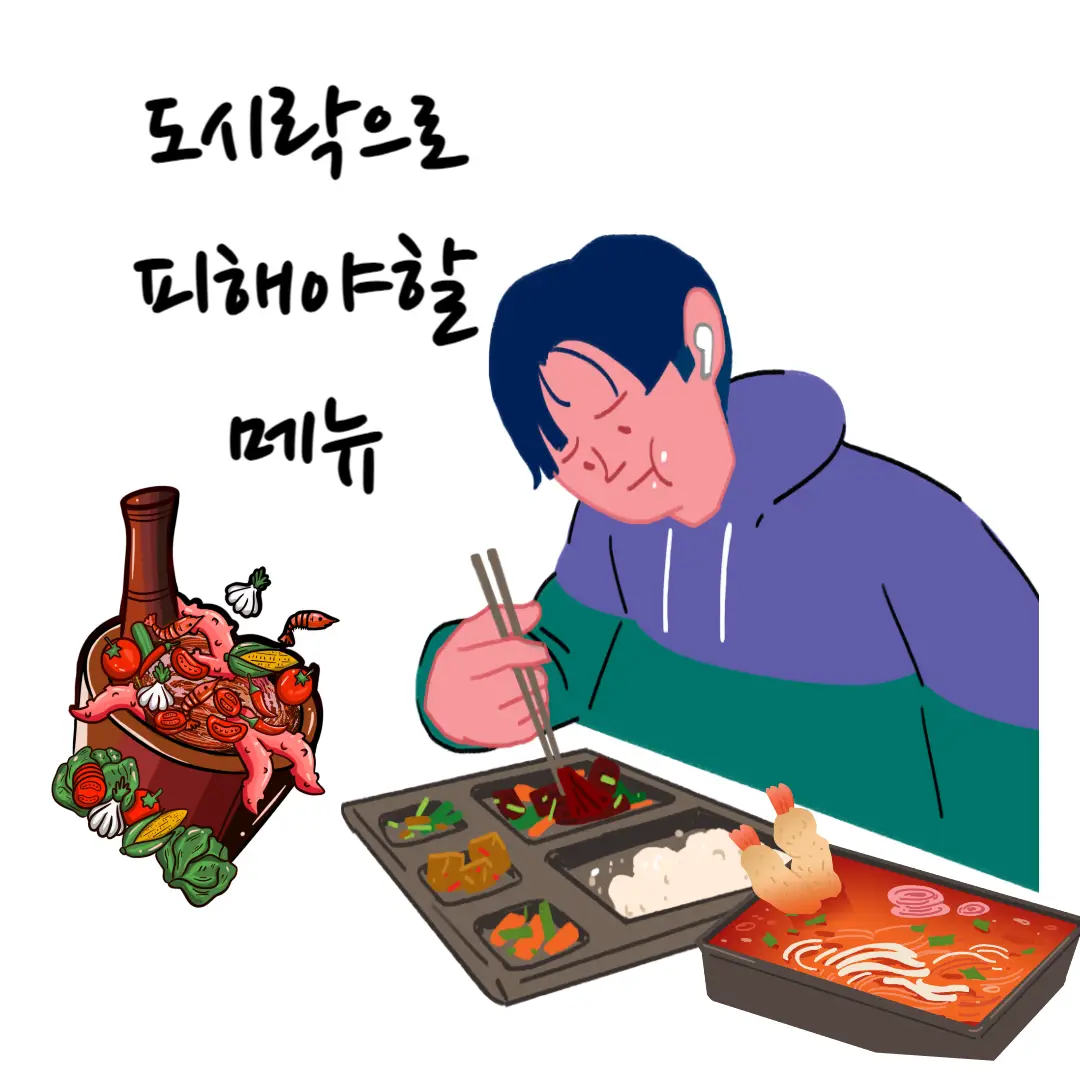 수능 도시락을 선택할 때, 몇 가지 메뉴를 피하는 것이 좋습니다. 아래는 수능 도시락에서 피해야 할 메뉴 예시입니다.