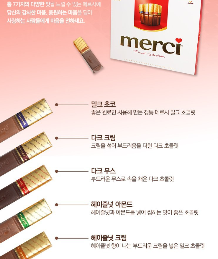 전통 간식들을 현대에 맞춰 만들고자 노려가는 옛다 합격 엿은 대부분의 작업을 수제로 진행하고 있다고 합니다. 또한 메르신초콜릿은 독일의 제과기업인 스톡의 브랜드로 '고맙습니다'라는 의미를 가지고 있습니다. 오랜 전통과 노하우로 최고 품질의 고급스러운 초콜릿이라고 합니다.