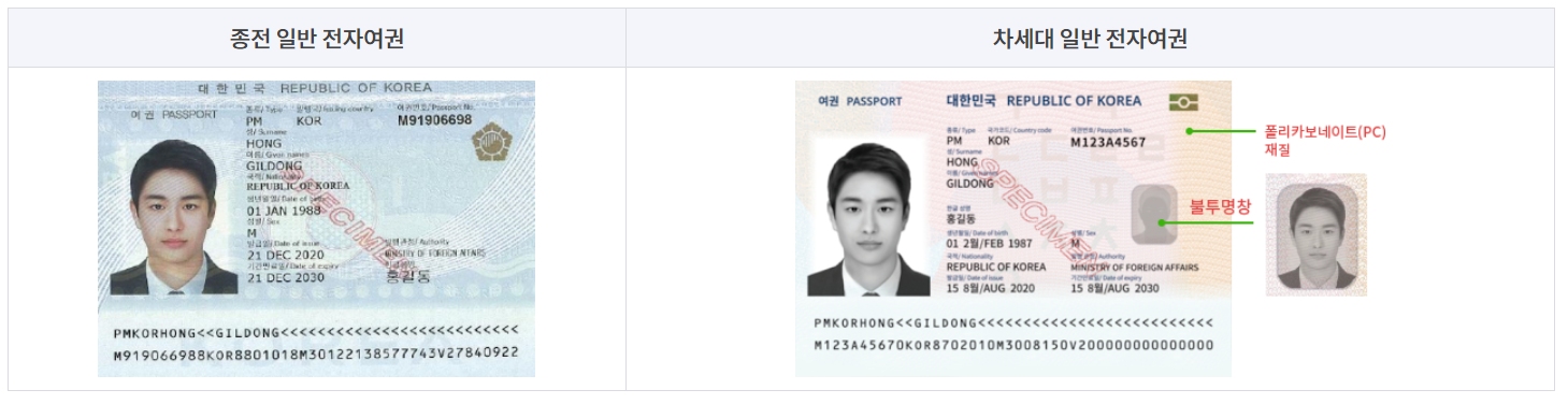 기존여권 vs 차세대 전자여권 달라진 점