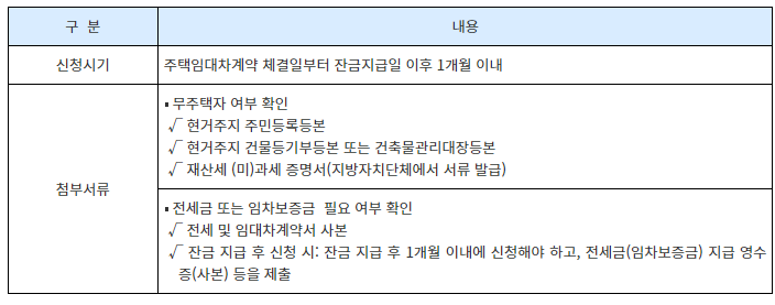 - 필요 서류: 전세(임대차) 계약서, 전세금 납부 영수증