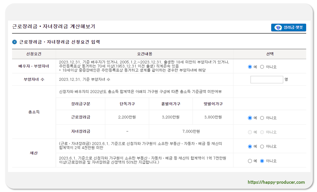 근로장려금 신청 자격